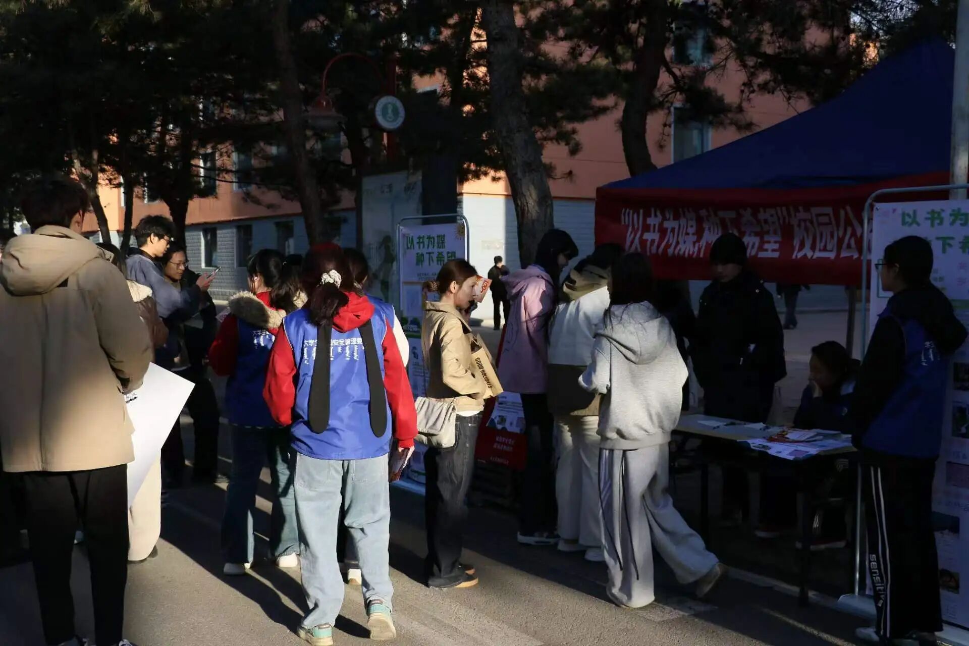 本次活动面向赛罕校区全体学生,巧妙融合了“书籍捐赠+创意寄语”的公益内核与“安全知识普及”的校园主责。活动现场,同学们不仅积极捐赠课外图书、文具,写下真挚祝福,更在工作人员引导下,驻足观看反诈、禁毒、消防安全主题展板,领取并阅读专题宣传资料。现场暖意融融,更添一份理性的守护。
