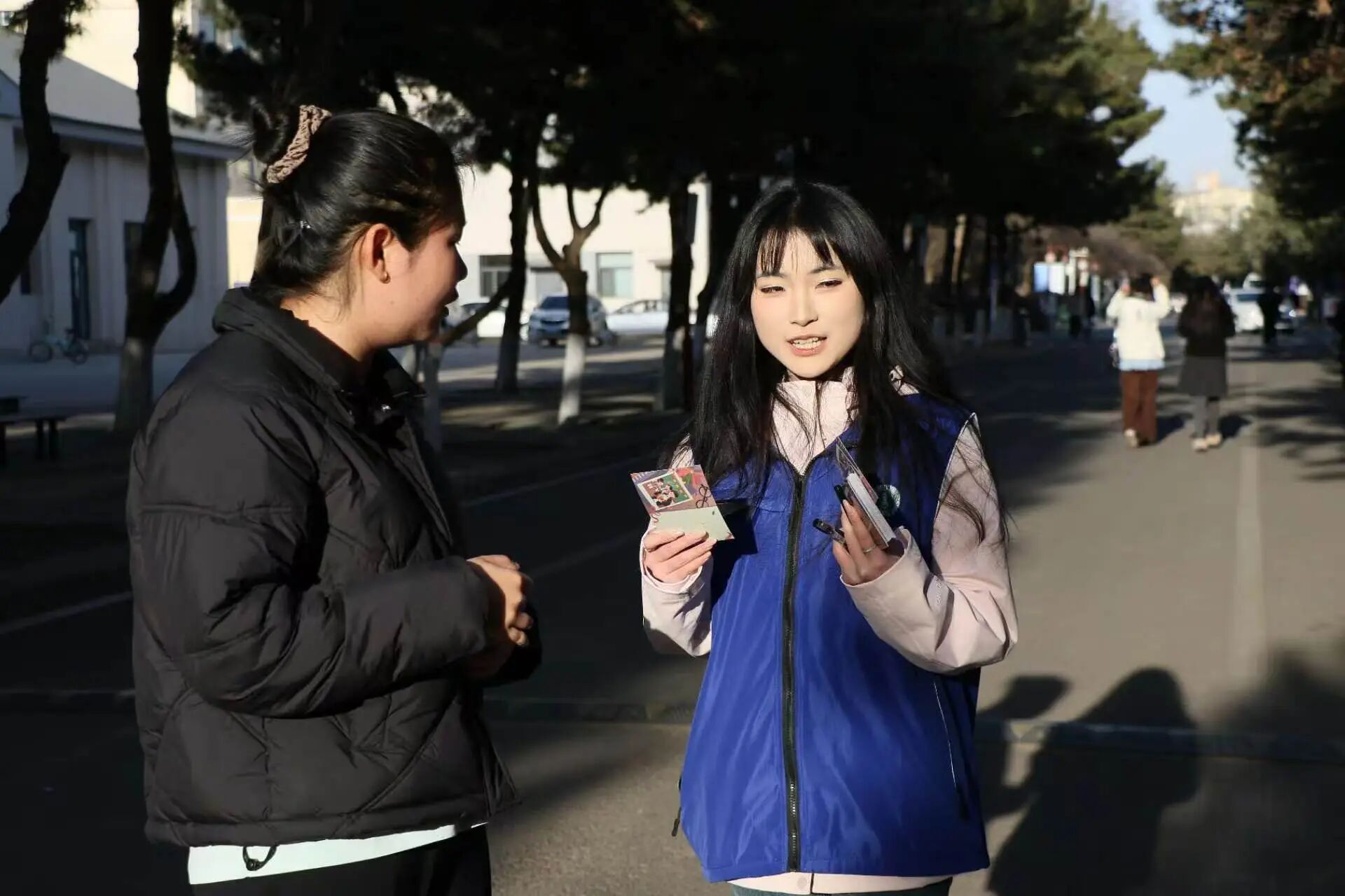 活动特设的线下寄语传递环节温情满满,同学们领取实体明信片,将对留守儿童的祝福与鼓励凝于笔端。与此同时,安管会成员借此良机,主动、亲切地向参与活动的同学们发放安全知识宣传单,面对面讲解校园常见安全风险。据统计,活动累计发放反诈、消防、禁毒等主题宣传单约500份,让公益的热度与安全的警钟同步传递。