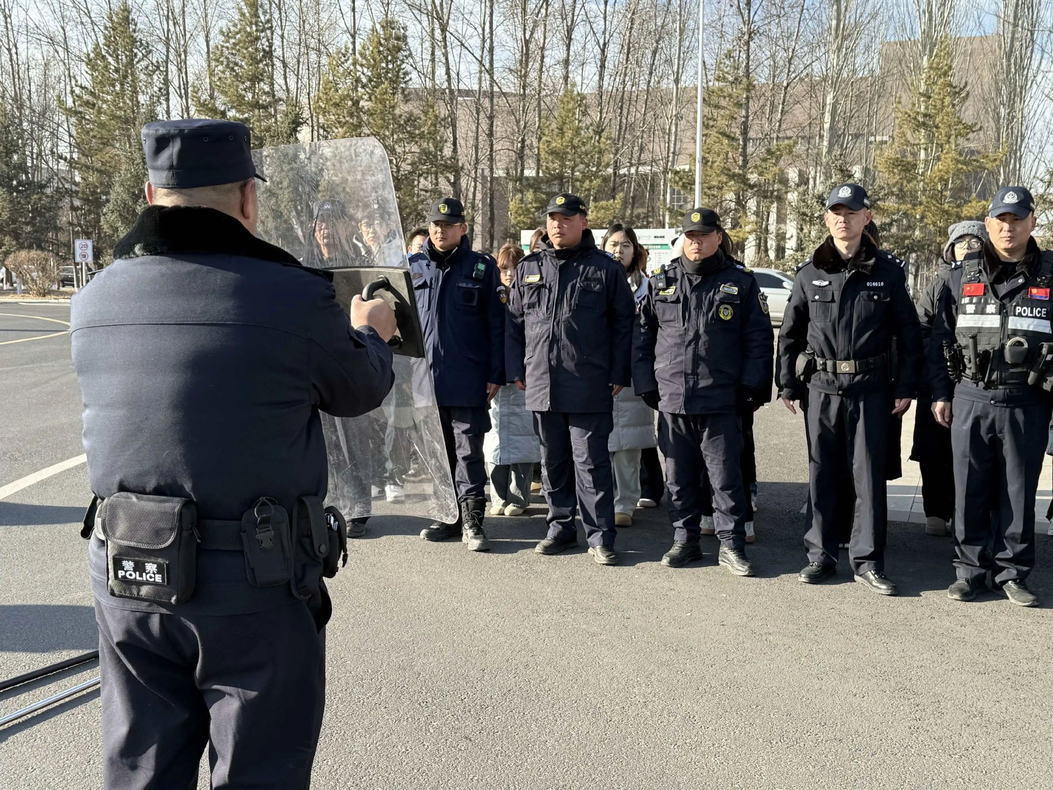 为切实提升校园安全应急处置能力,值此《中华人民共和国反恐怖主义法》颁布十周年之际,2025年12月5日上午10时,我校保卫工作部(保卫处)联合呼和浩特市公安局开发区分局反恐怖与特巡警大队、盛乐北街派出所,在盛乐校区组织开展了一场实战化校门反恐防暴应急处突演练。保卫工作部(保卫处)工作人员、学校安保人员及学生代表等五十余人参与演练。
