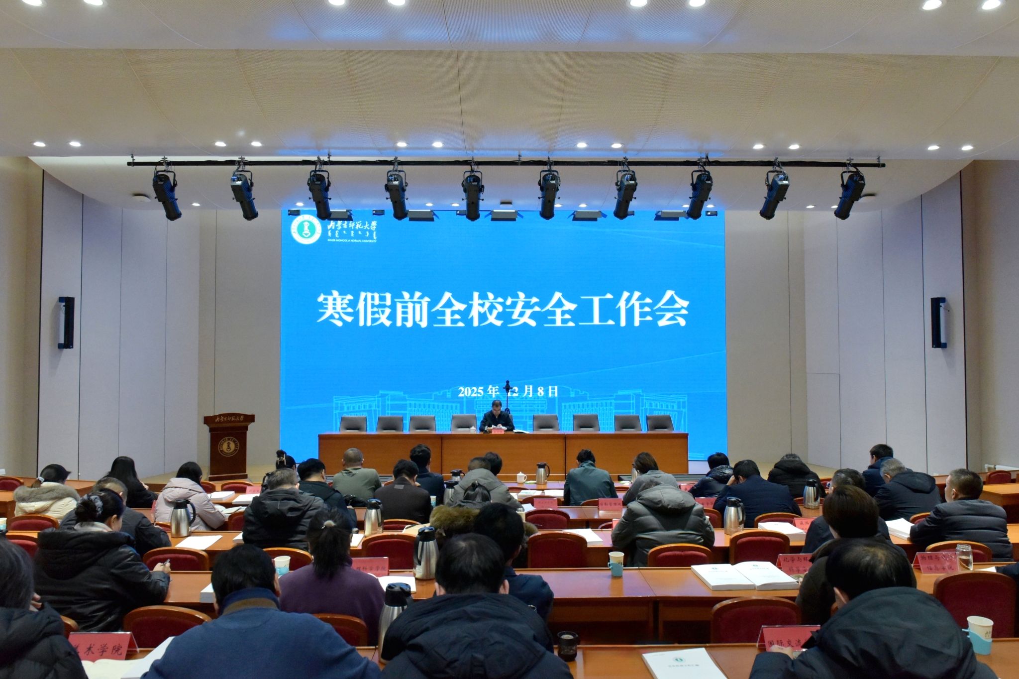 12月8日下午,我校在赛罕校区学术交流中心报告厅召开寒假前全校安全工作会议。党委委员、副校长景剑峰出席会议并讲话。各学院、各相关部门主要负责同志参加会议。