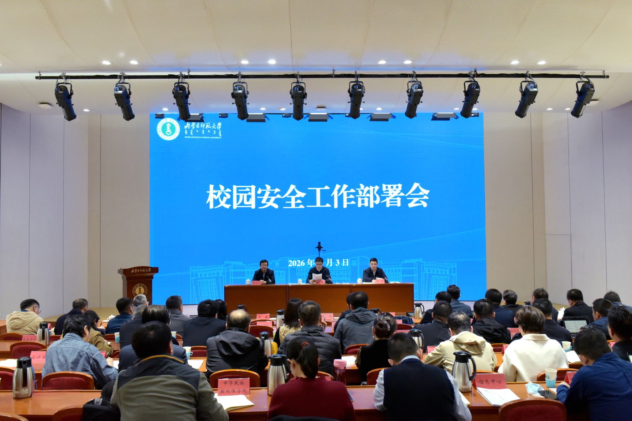 会议指出,校园安全是学校各项工作开展的前提和保障,事关师生切身利益,事关学校高质量发展大局。当前全校安全工作形势严峻复杂,各领域风险隐患不容忽视,全校上下必须提高政治站位,强化责任担当,以高度的责任感和使命感抓实抓细各项安全工作,坚决守住校园安全底线。一要狠抓安全生产责任制落实。要始终秉持对师生负责、对学校发展负责的态度,严格遵循“三管三必须”工作要求,层层压实校园安全主体责任,细化责任分工,明确工作举措,确保安全责任全面落实到位、各项安全制度精准执行到位,构建起全覆盖、无死角的安全责任体系。二要全力推进风险隐患排查整治。要在全校范围内全面开展拉网式风险排查,做到隐患排查不留死角、整改落实闭环管理,从根本上消除事故隐患,坚决防范各类安全事故发生。三要强化师生安全教育培训。要聚焦消防、交通、实验室、防电信诈骗等重点安全领域,开展精准化、针对性安全教育与体验式应急演练,全面提升师生安全防范意识和应急处置能力。四要抓实学生心理健康教育工作。要高度重视开学初关键时期学生思想动态与心理状况监测工作,进一步健全心理危机预警与干预机制,深入开展学生心理健康状况全面排查,精准掌握学生思想动态和心理需求,全力守护学生身心健康成长。
