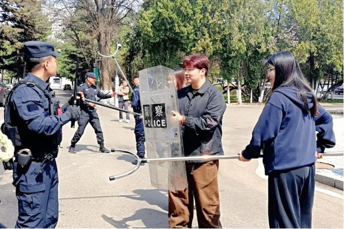 以演练促准备、以实战强能力,全面提升校园应急处突水平。4月15日,在赛罕校区开展“统筹发展和安全 护航‘十五五’新征程——全民参与反恐防暴应急演练 筑牢应急救援安全防线”主题演练,安保人员、医护人员、学生代表、附属幼儿园教职工、公寓管理员及物业人员全程参与。在呼和浩特市公安局治安管理和特巡警支队武装巡处三大队专业指导下,模拟突发警情处置、防暴防护、应急救援等环节,有效提升协同作战与自救互救能力。
